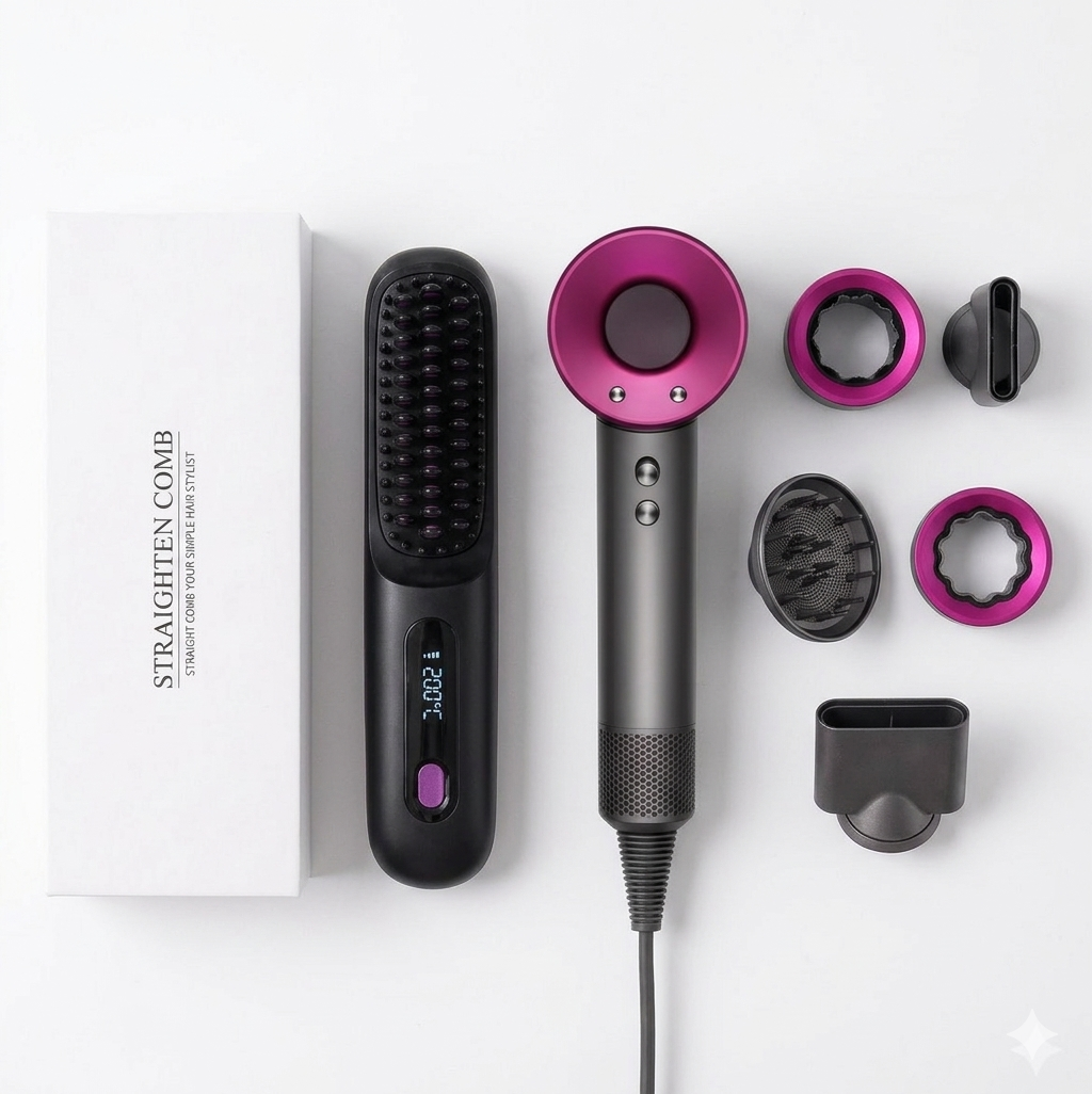 Tudo o que precisas para um ritual de styling de salão, sem sair de casa. O duo perfeito para alisar, secar e modelar com resultados profissionais.